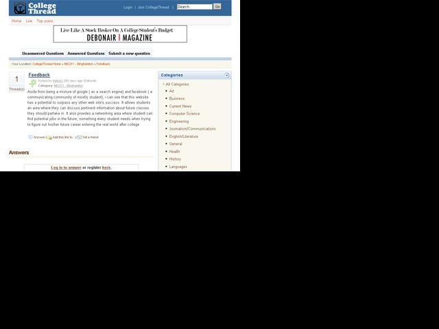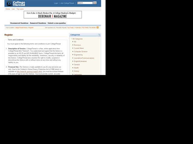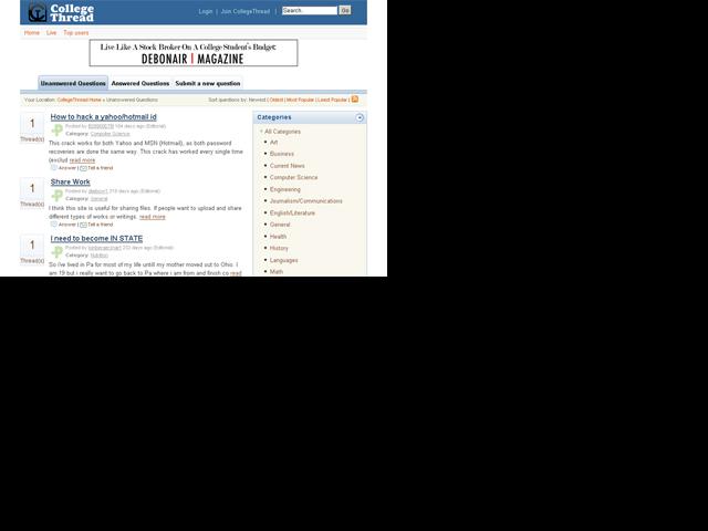 Design and development of CollegeThread.com was subcontracted to Internet Architects by another Internet development firm that ran into problems and needed help.