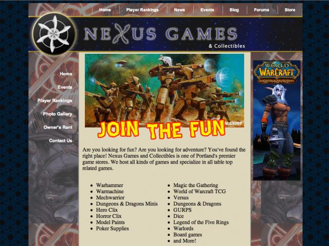 Nexus Games is a hobby store in Gresham , Oregon that hosts events, sponsors contests, and sells a wide variety of games, miniatures, and collectables.